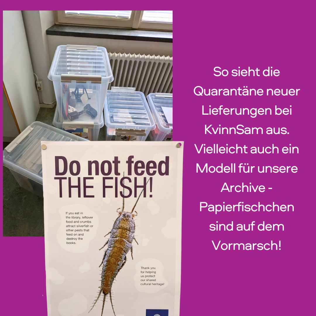 KvinnSam ist das zentrale feministische Archiv in Schweden und schon seit den 1970er Jahren Teil der Universitätsbibliothek in Göteborg. Das Archiv ist personell im Vergleich sehr gut ausgestattet, aber das einzige seiner Art in Schweden. Die Kolleg*innen bei KvinnSam können die Infrastruktur und Ressourcen der Universitätsbibliothek mitnutzen und so kann man dort vieles Lernen, zum Beispiel über Bestandserhaltung oder den Umgang mit Schädlingen wie Papierfischchen (gruselig!).