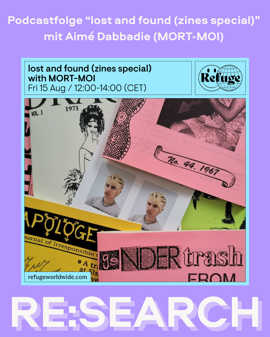 Das Thema Zines spielte auch in einem weiteren RE:SEARCH-Beitrag eine Rolle: In der Zines-Special-Folge “lost and found” des Podcasts Refuge Worldwide von Aimé Dabbadie (MORT-MOI) wird das im FFBIZ archivierte Muchacha Fanzine und die darin zelebrierte Sängerin Selena Quintanilla-Pérez vorgestellt und besprochen.